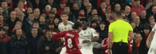 在第31分鐘的時候8號球員索博斯洛伊在外圍進攻的時候,不慎踢到了皇馬14號球員瓊阿梅尼的手臂。