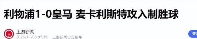 上游新聞(利物浦1-0皇馬 麥卡利斯特攻入制勝球2025.11.05)