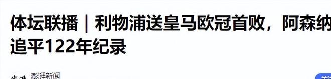 澎湃新聞(體壇聯(lián)播|利物浦送皇馬歐冠首敗,阿森納追平122年紀錄2025.11.05)